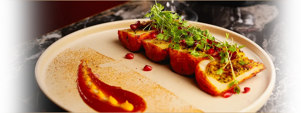 9.900 Ft / 26 €Malai brokkoli, Tandoori Paneer sajt, Chowk ki Tikki, Barwan Aloo, menta és paradicsom Chutney.