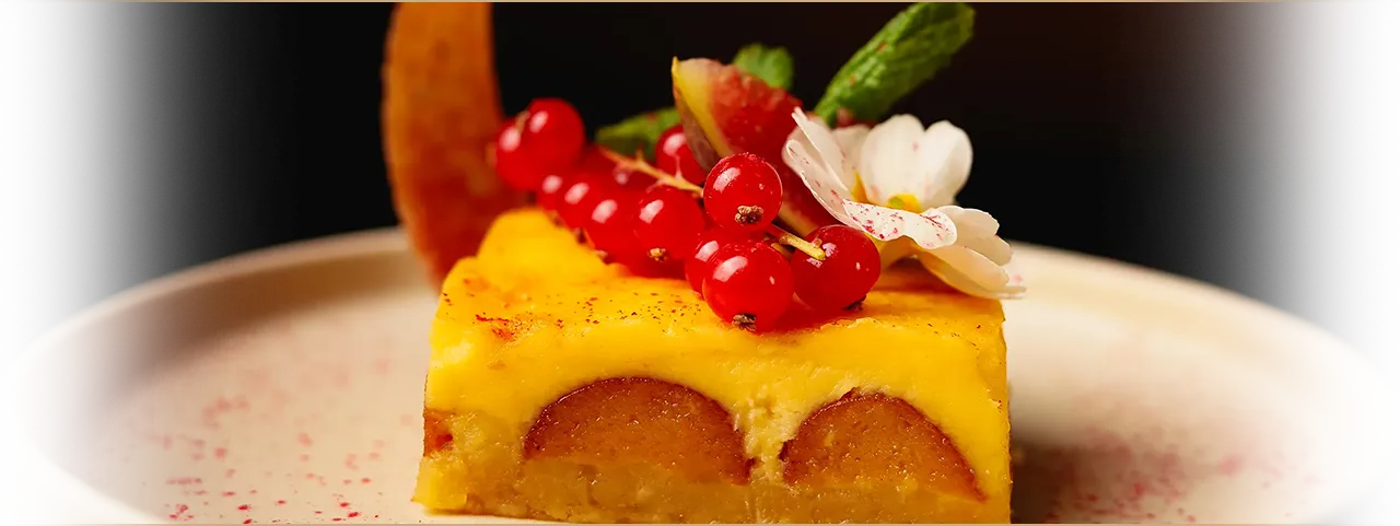 3.500 Ft / 9 €Mango Panna Cotta (cukormentes) eperrel, áfonyával és ribizlivel.